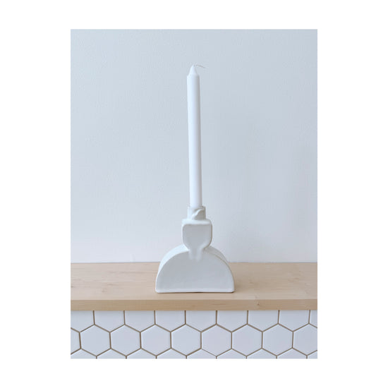 Hand sculpted in creamy white stoneware and finished in a soft satin glaze. Inspired by Scandinavian design, this simple form is made for slow evenings and soft light.
