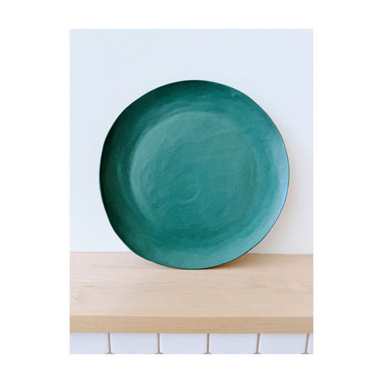 The Hunter forms are hand built with a more rustic sensibility. A coiled serving bowl with an organic raw edge and a broad, slab-formed platter invite a slower pace. Their surfaces carry the marks of the hand and echo the quiet beauty of unearthed objects.
