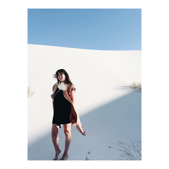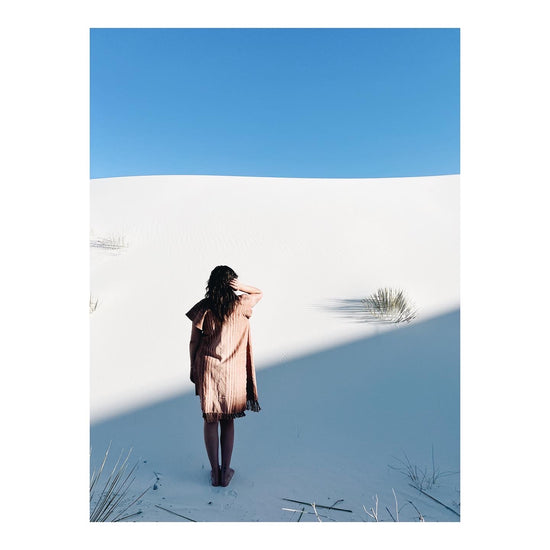 Light and breezy, layer this year around. This particular design includes a fibonacci focused warp, clasped weft shoulder, and dramatic side slits, making it feel like a true statement piece.