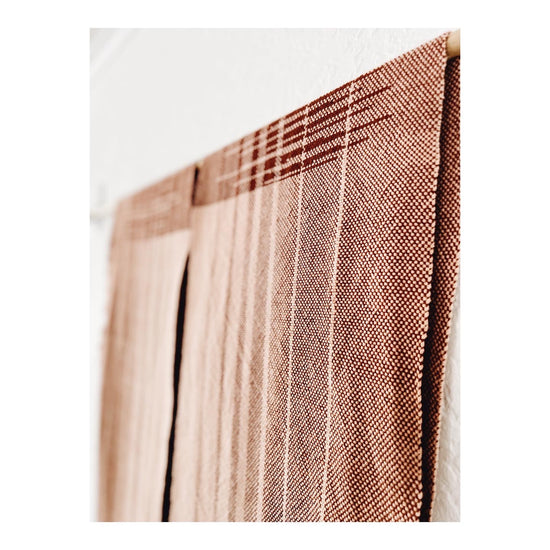 Inspired by my time in Japan, and arriving at the tail end of sakura(cherry blossom) season. I was invited to enjoy the festivities in Niigata, and followed them all the way back to Tokyo, where I lived for the rest of the year. This piece holds both time and memory in its weave. Subtle variation reflects its story.